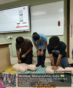 To enhance understanding and retention, the session included dynamic live demonstrations alongside captivating video presentations. Attendees were encouraged to participate in hands-on practice, where they had the invaluable opportunity to perform CPR techniques on a realistic training dummy. This practical experience fostered an environment of learning and collaboration among peers. The event was inaugurated with lively energy, and Dr. Amisha Vora graciously presented a token of appreciation to the speakers, recognizing their expertise and dedication to educating others. The session concluded on a gracious note with a heartfelt vote of thanks articulated by Mr. Ritvi Kapasi.